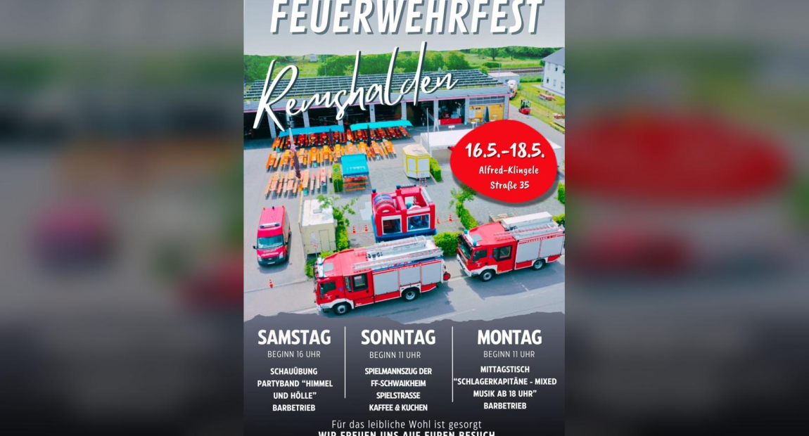 Vom 16. Mai bis 18. Mai 2026 findet das Feuerwehrfest rund um das Feuerwehrhaus in der Alfred-Klingele-Straße statt.