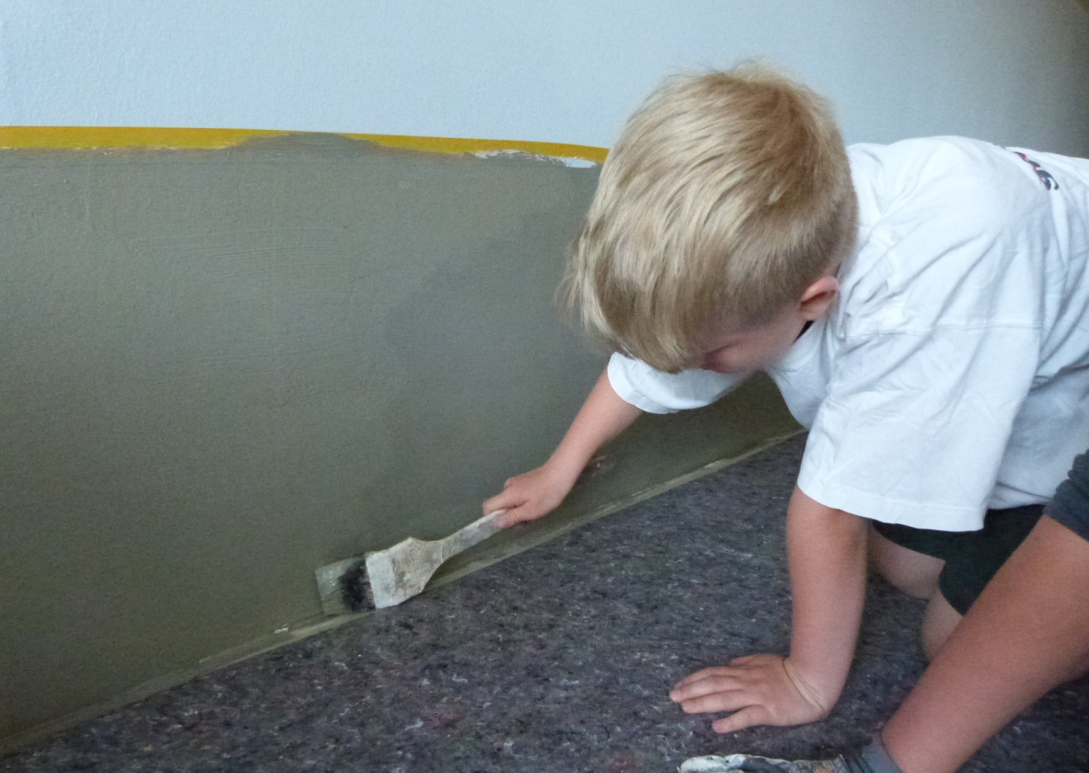Tag 1 Abkleben, Grundieren, Weißeln, Farbe in den Umkleiden: