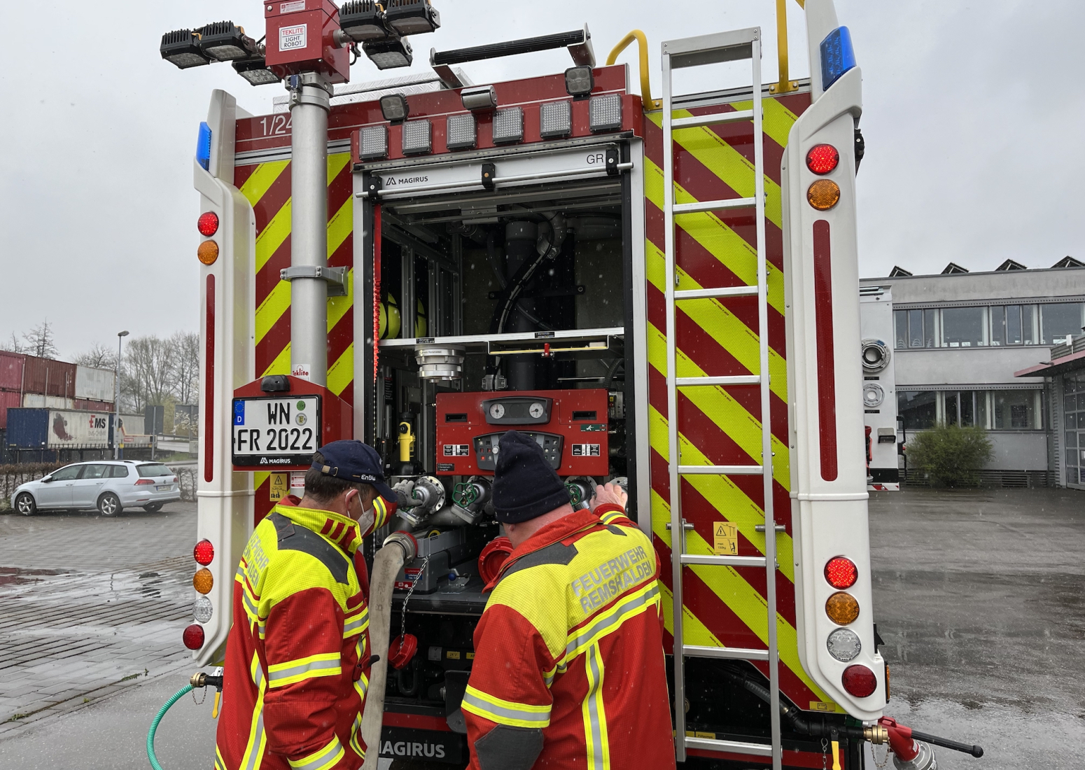 Ende März konnte die Feuerwehr Remshalden das neue Tanklöschfahrzeug 4000 (TLF 4000) bei der Firma Magirus in Ulm abholen.