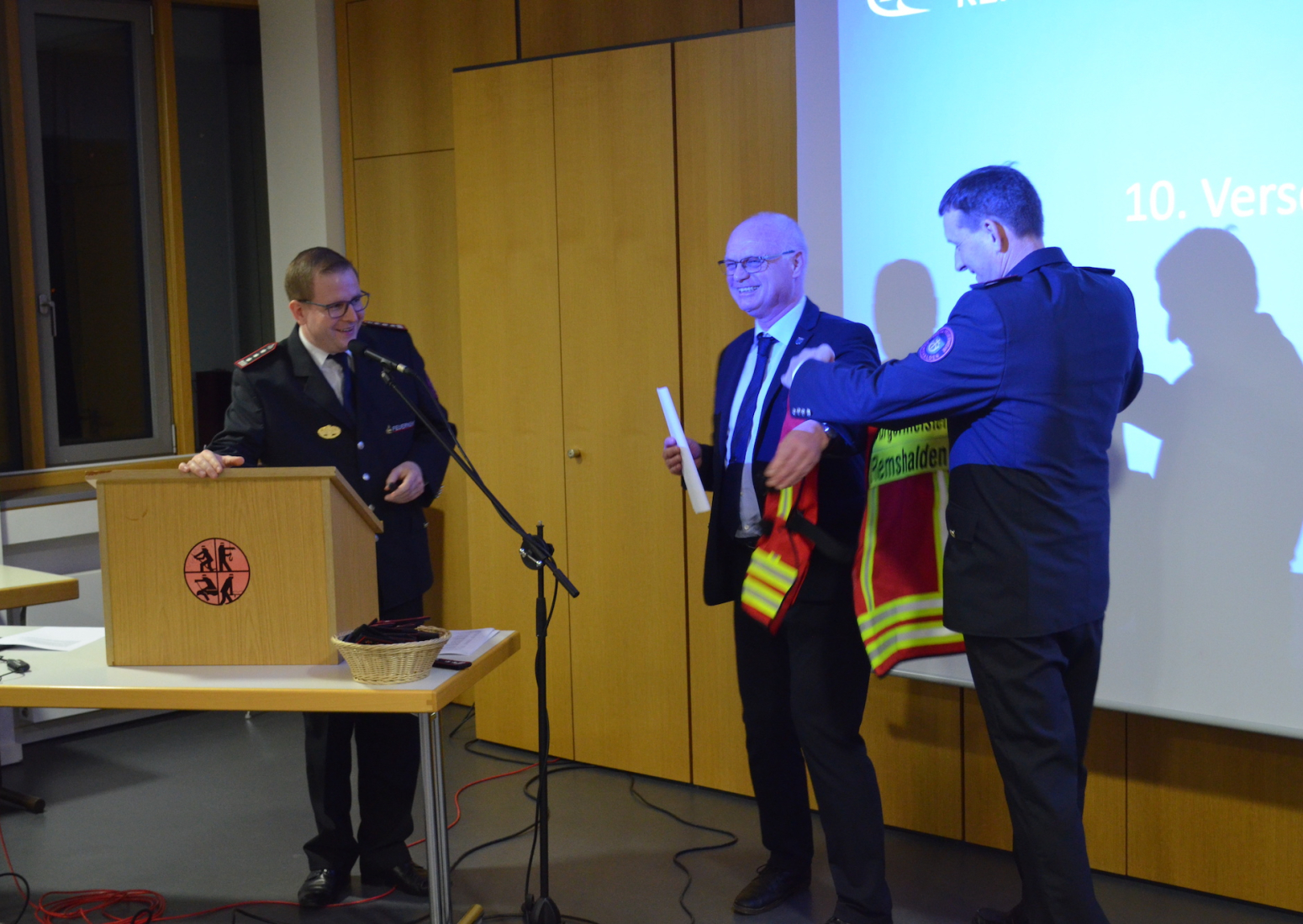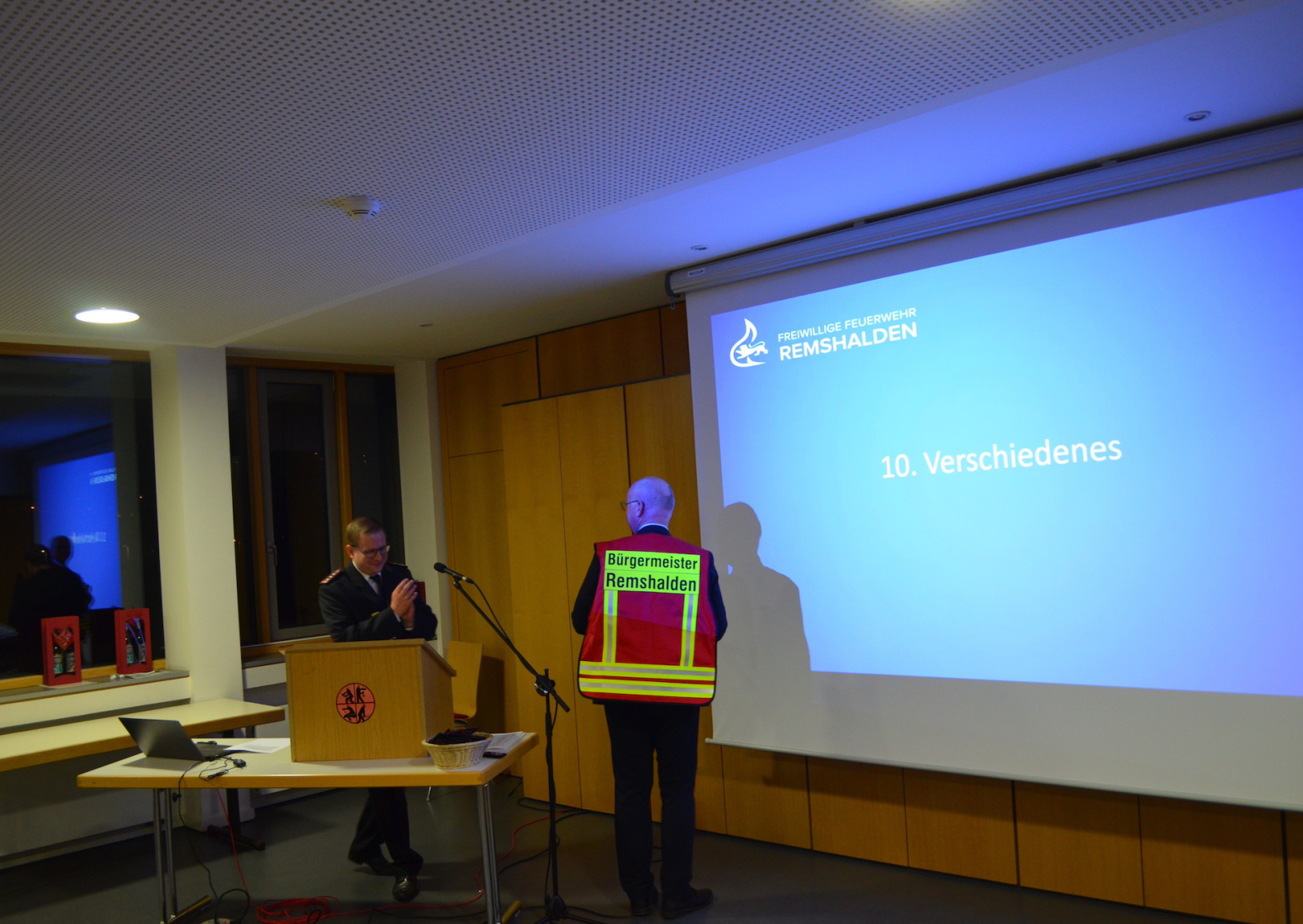 Eine besondere Wertschätzung und Geste für die Feuerwehr ist auch immer der Besuch der Ehrengäste, die der Einladung zur Versammlung gefolgt sind. Voran Bürgermeister Reinhard Molt mit Vertretern der Gemeindeverwaltung und des Gemeinderates, sowie Gäste der verschiedenen Blaulichtfraktionen wie Polizei und DRK.