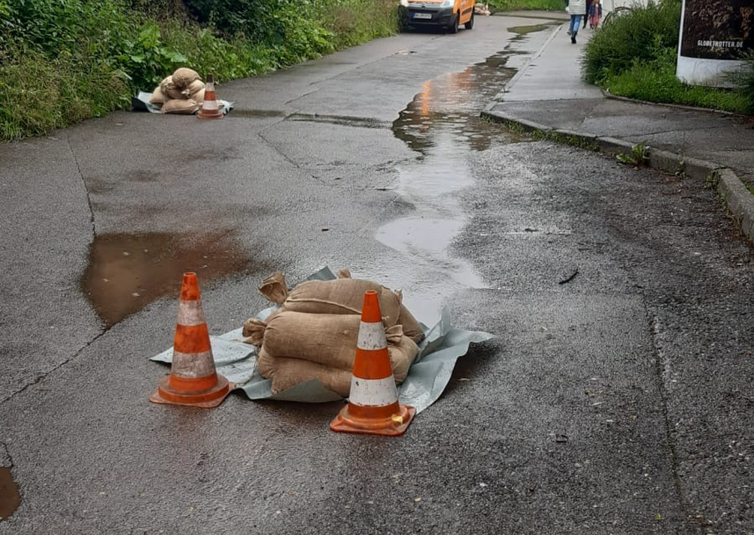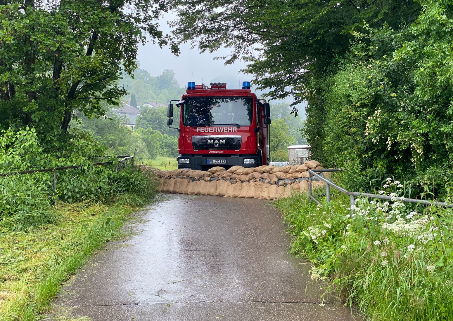 Die ersten Einsätze ereilten die Wehr am Samstagmorgen. Keller waren vollgelaufen, ebenso blockierte ein umgestürzter Baum die Zufahrt zu einem Wohngebäude. Ständig beobachtete der Stab die Entwicklung der Pegelstände. Da diese weiter stiegen, veranlassten die Entscheidungsträger das vorsorgliche Befüllen von Sandsäcken in Zusammenarbeit mit dem Bauhof. Ebenso fanden Kontrollfahrten im Ortsgebiet statt, um Lageveränderung schnell erkennen zu können. Durch die Unterstützung der Kräfte aus Rohrbronn und Buoch in den verschiedenen Einsatzabschnitt konnten die Vorbereitungen für das Feuerwehrfest fast ungehindert weiter gehen und dieses pünktlich um 16 Uhr beginnen. Die Gesamtlage entspannte sich gegen Abend so weit, dass der Krisenstab personell zurückgefahren wurde.