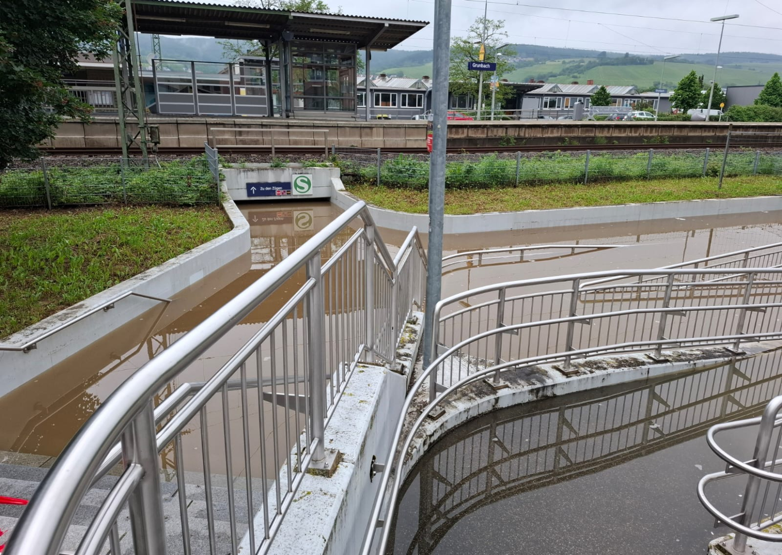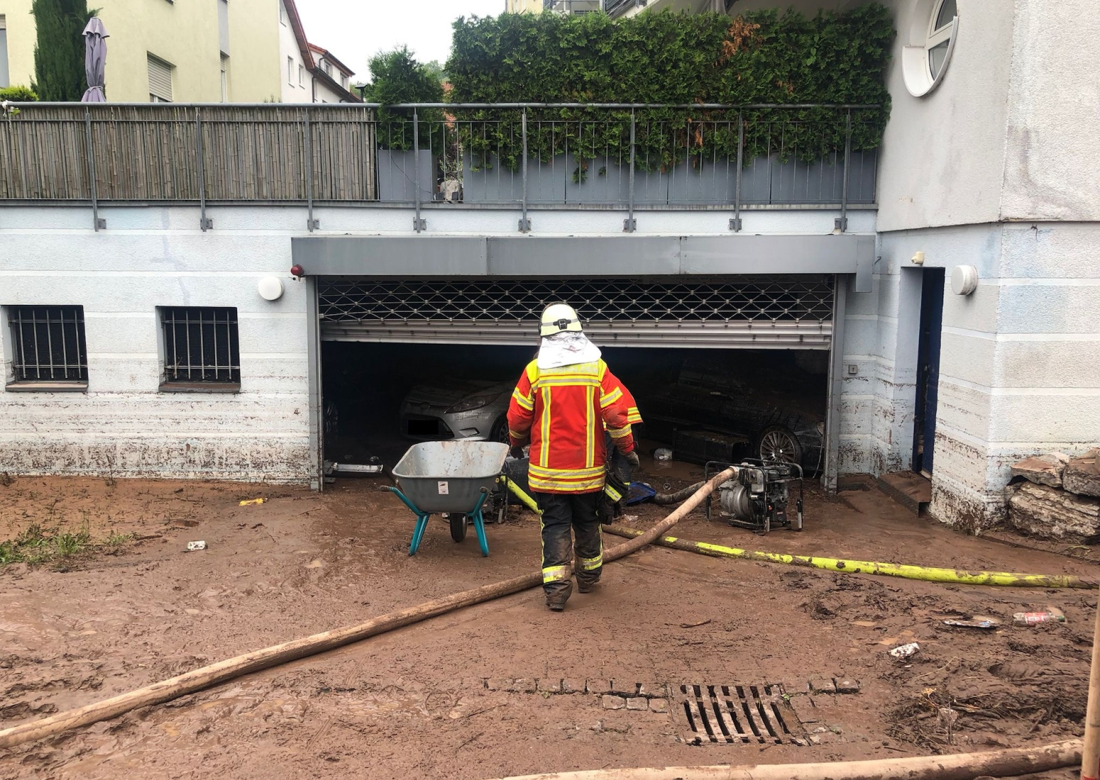 Keine Stunde später spitzte sich die Lage jedoch dramatisch zu und endete sogar mit einem Katastrophen-Voralarm für den Rems-Murr Kreis. Die Feuerwehrführung erreichte am Sonntagabend die Meldung, dass das Wieslauftal überflutet ist. Vorsorglich wurden daraufhin alle Einsatzkräfte der Feuerwehr Remshalden mobilisiert. Eine Entscheidung die sich als goldrichtig herausstelle. Kurz darauf kam schon Meldungen über vollgelaufene Keller im Gemeindegebiet. Ebenso war die Kreisverbindungstraße zwischen Grunbach und Geradstetten nicht mehr passierbar. Die Flutwelle erreichte in der Nacht auch das mittlere Remstal. Das Einstauen des Regenrückhaltebeckens Winterbach zum Schutz der Kommunen Remsabwärts begann.