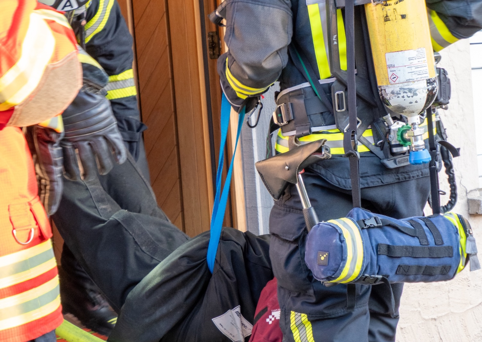 Im Verlauf der Übung konnten insgesamt vier Erwachsene, zwei Kinder sowie zwei Übungspuppen erfolgreich aus dem Gebäude gerettet werden. Die Rettungsmaßnahmen umfassten unter anderem den Einsatz der Drehleiter zur Personenrettung über den Balkon, eine Crashrettung aus dem Innenangriff sowie die Nutzung von Fluchthauben zum sicheren Transport der betroffenen Personen durch den verrauchten Treppenraum.