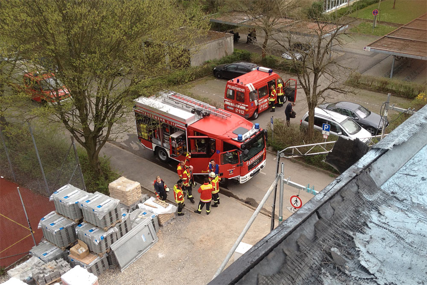 Vor Ort konnte jedoch rasch durch den Einsatzleiter festgestellt werden, das lediglich die Isolierung auf dem Dach gebrannt hatte und diese bereits von Bauarbeitern gelöscht wurde.