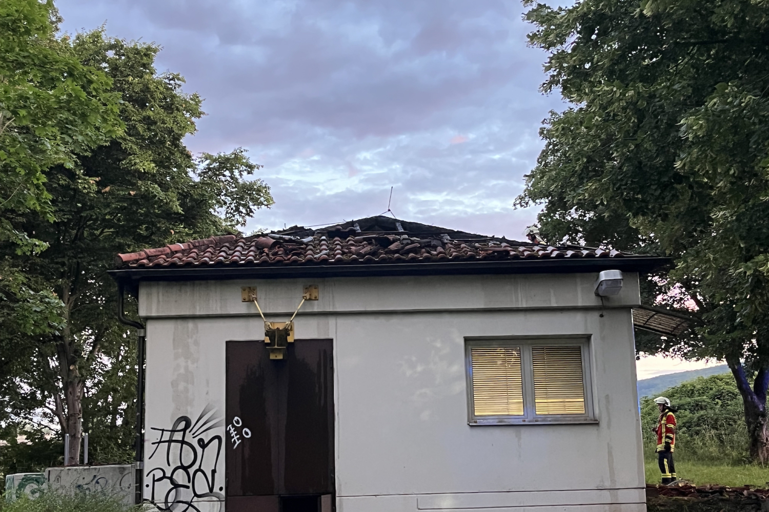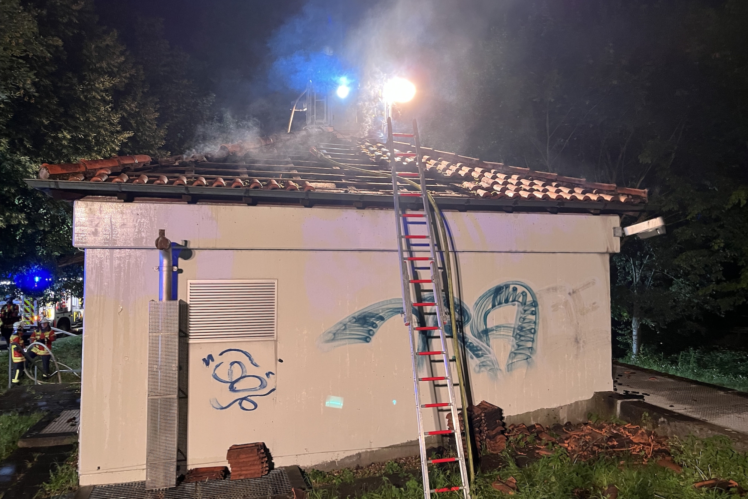 Beim Eintreffen der ersten Kräfte konnte bereits Glut aus dem Dachbereich eines Pumpwerkes festgestellt werden.