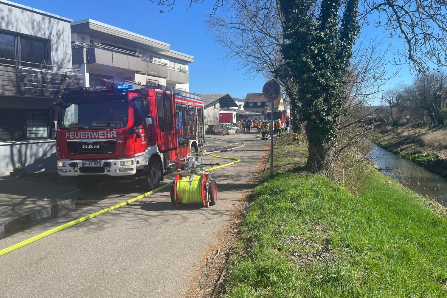 Am Dienstagmittag wurde die Feuerwehr Remshalden zu einem Zimmerbrand in die Uferstraße alarmiert. Beim Eintreffen der ersten Einsatzkräfte konnte eine starke Rauchentwicklung und Flammen aus dem Gebäude festgestellt werden. Die Einsatzleitung entschied, mehrere Rohre zur Brandbekämpfung einzusetzen.