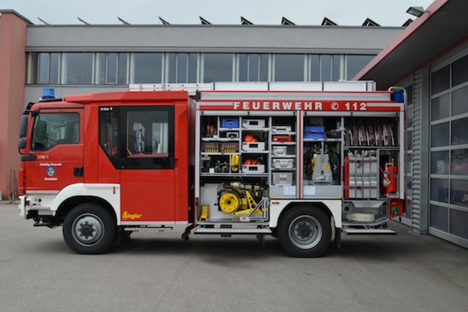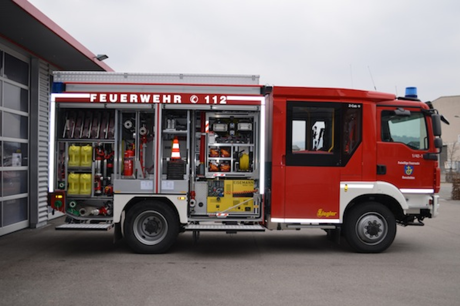 Als Technische Besonderheiten befindet sich am Heck eine Verkehrswarneinrichtung zur Absicherung von Einsatzstellen und ein pneumatisch ausfahrbarer Lichtmast auf dem Dach. Durch das automatisierte Schaltgetriebe und der Rückfahrkamera wird die Fahrt für den Maschinisten vereinfacht.