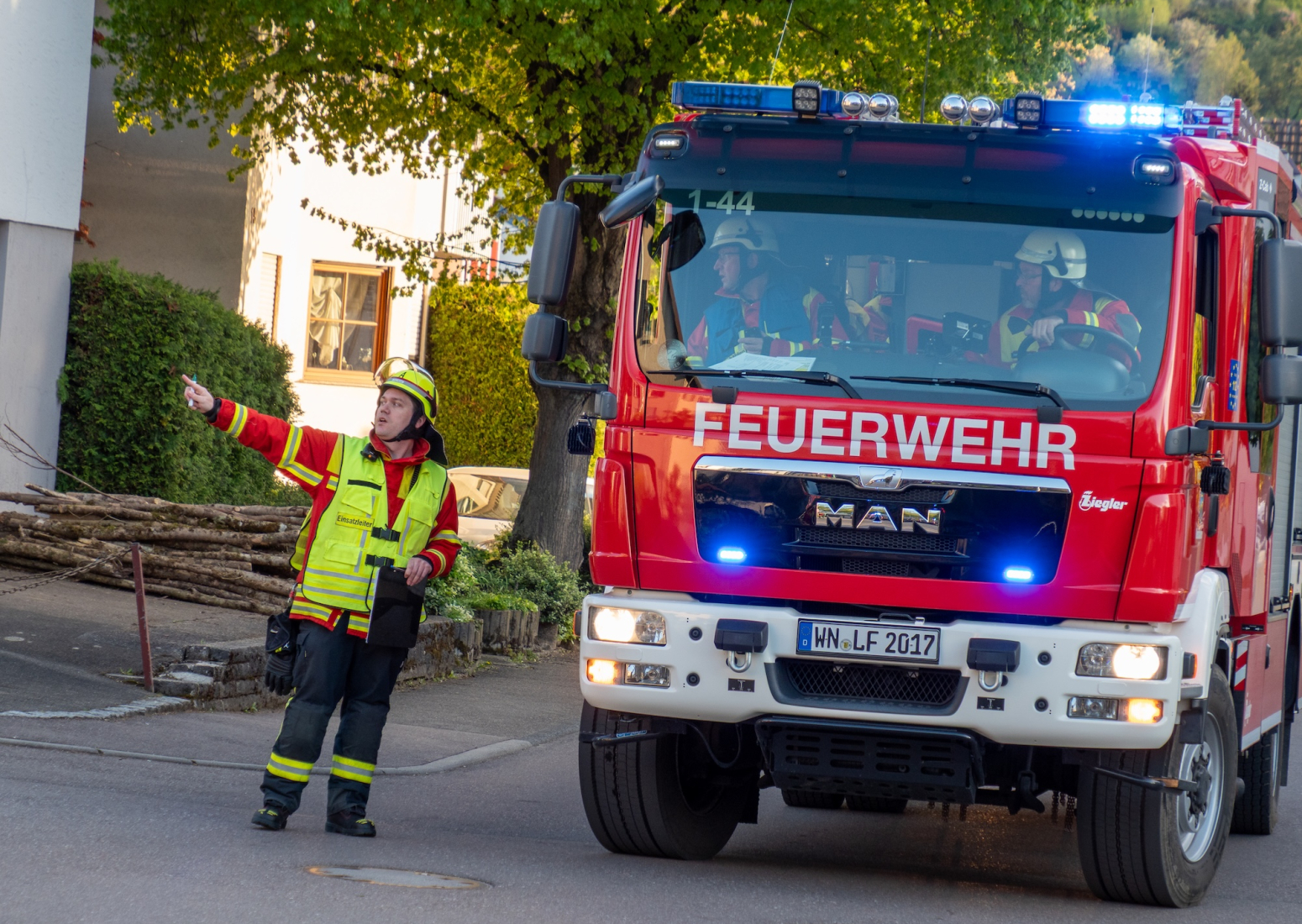 Am Montag, den 20. April 2026, führte der Zug 2 der Feuerwehr Remshalden gemeinsam mit der Feuerwehr Weinstadt eine Einsatzübung mit dem Szenario „Wohnungsbrand im 1. Obergeschoss“ durch.