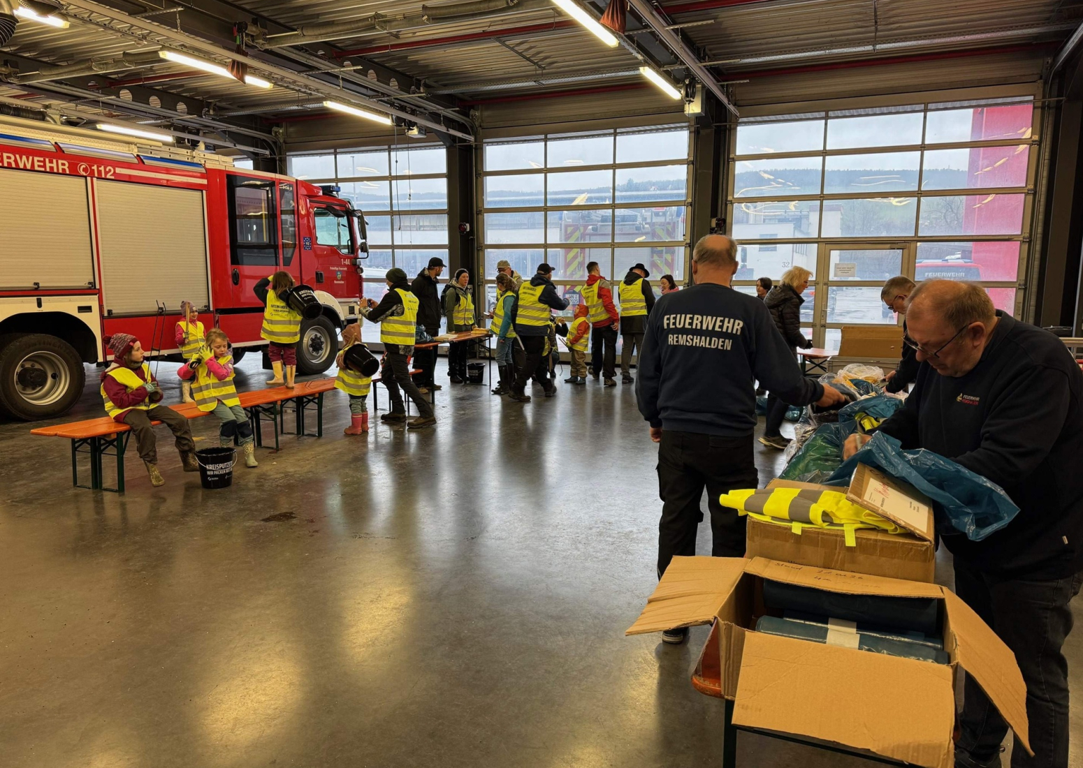 Auch die Verpflegung der hungrigen Müll-Sammler und Sammlerinnen übernahm die Altersabteilung. Bei Maultaschen mit Kartoffelsalat und Saiten sowie einem Getränk wurden die Lebensgeister nach der Sammelaktion im Regen wieder zum Leben erweckt. Die Kinder hatten ihren Spaß im Feuerwehrhaus mit den großen Fahrzeugen.