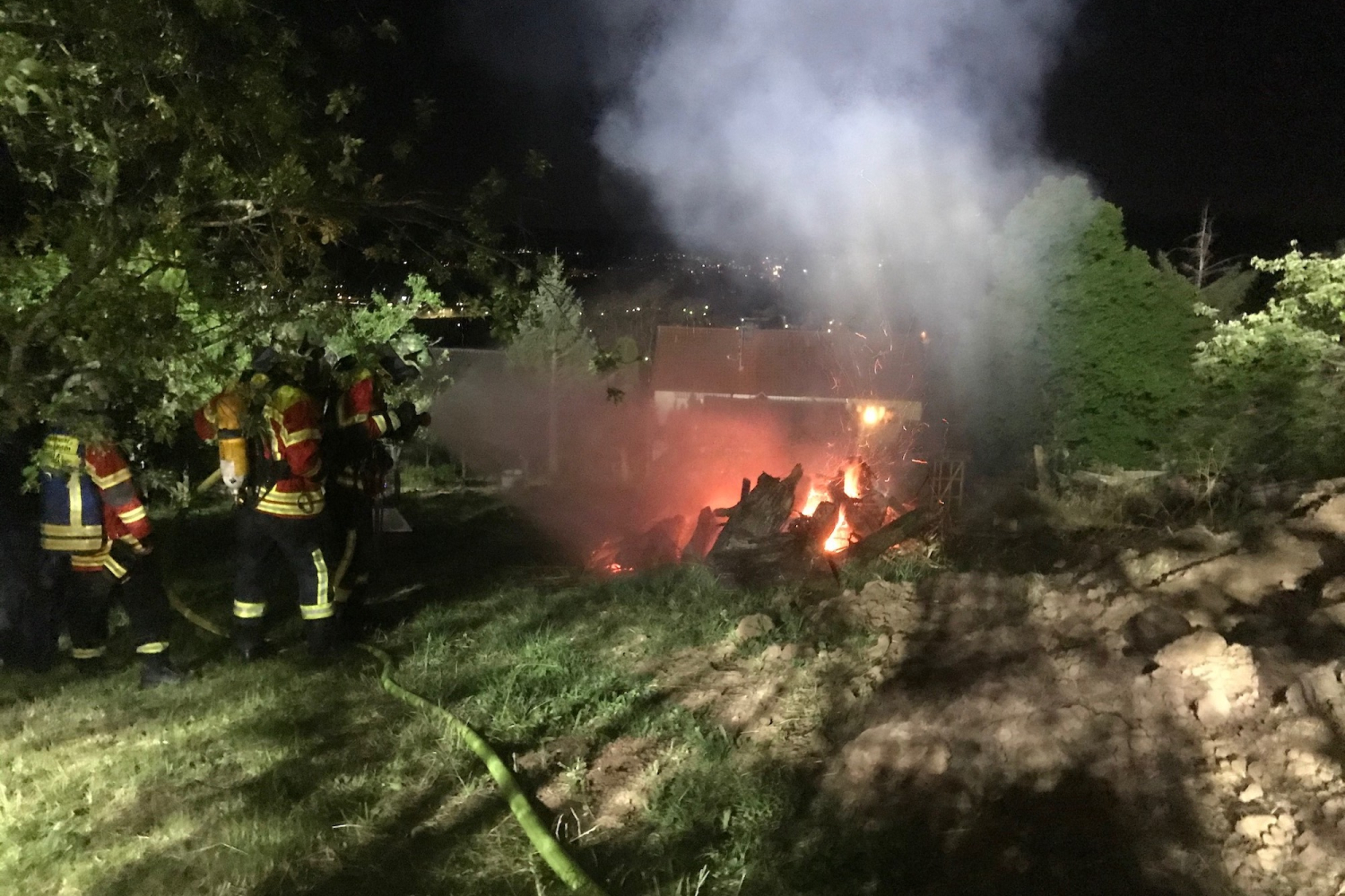 Bereits auf der Anfahrt war ein großer Feuerschein sichtbar. Daraufhin löste der Einsatzleiter Vollalarm für die Feuerwehr Remshalden aus.