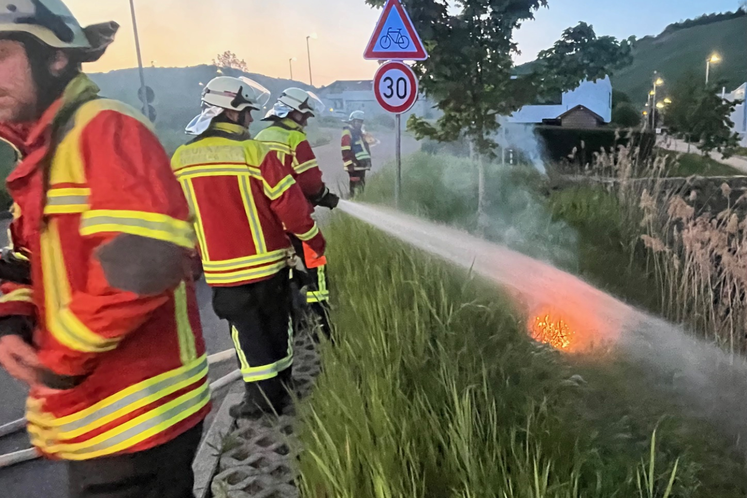 Vor Ort konnte eine brennende Wiese und Schilf festgestellt werden, das großteils wieder erloschen war. Die Nachlöscharbeiten wurden mit 2 C-Rohren durchgeführt.